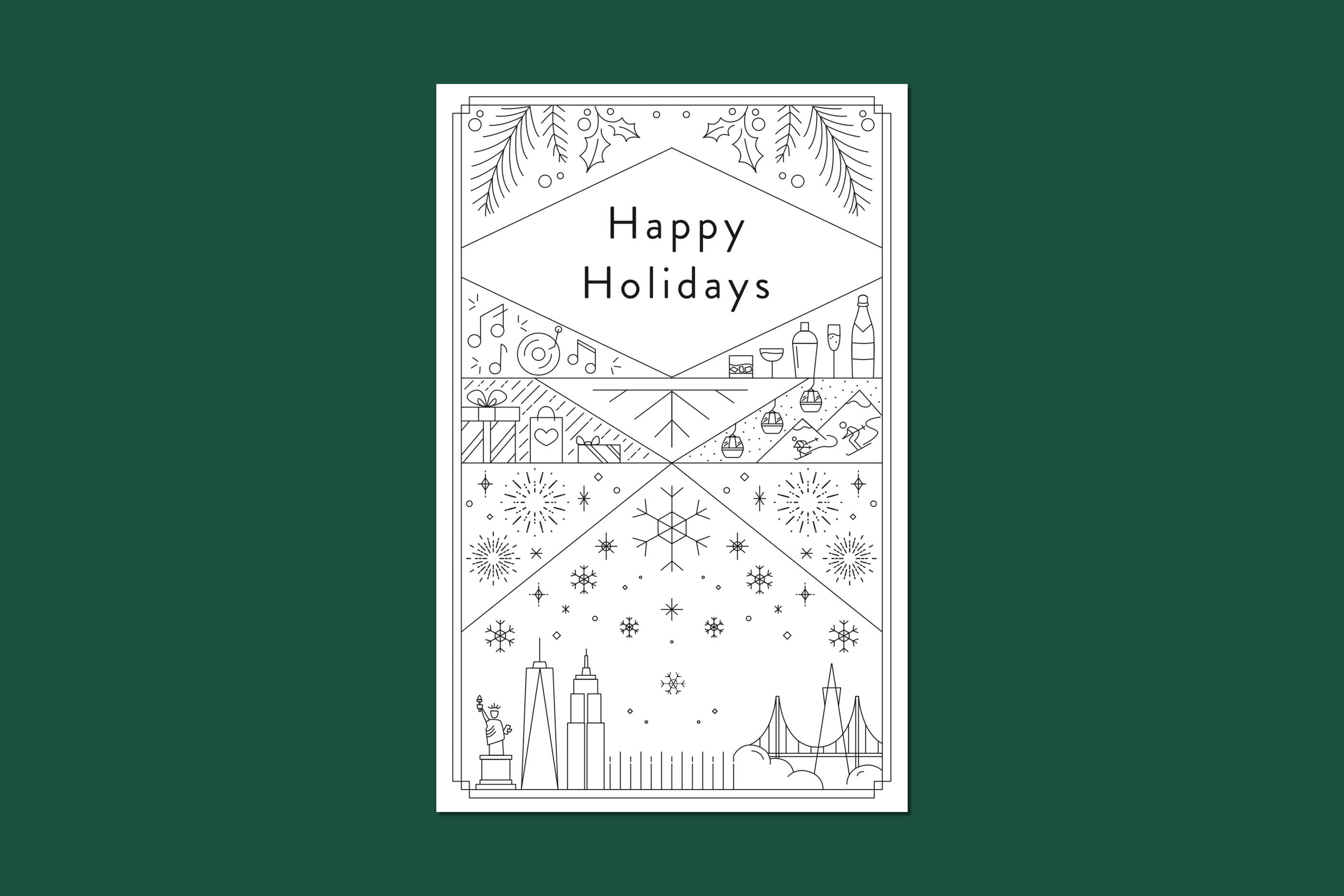 Design and custom Illustration of annual holiday cards for a PR firm in NYC.